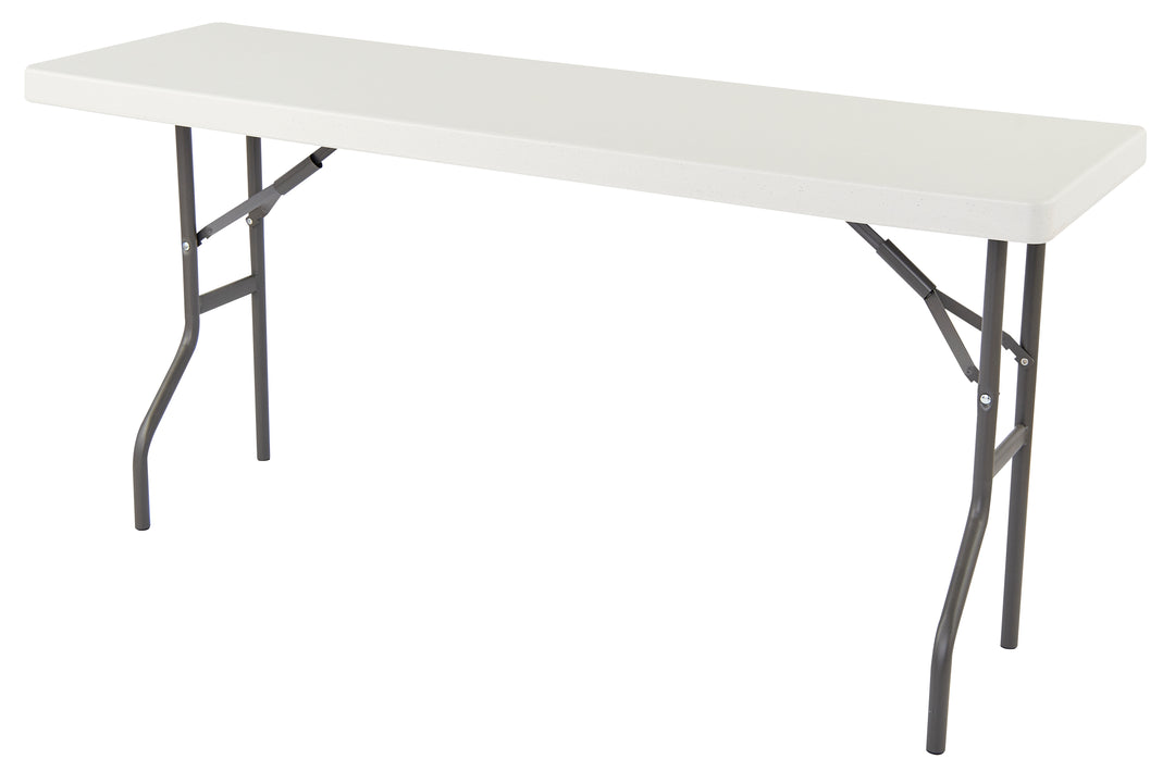 Strong. Durable. Multi-Purpose. IndestrucTable® is our broad line of resin-top folding tables. This varied line can meet any need you have. IndestrucTable® tables have a blow-molded, high density polyethylene top, which is scratch- and dent-resistant, easy to clean and contemporary. The legs are heavy gauge, gray powder-coated tubing with bracing for strength and they include non-mar plastic feet.