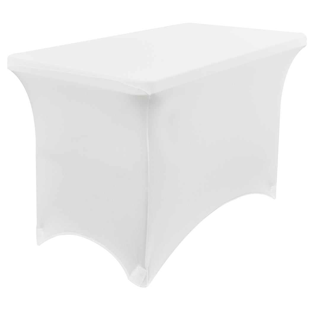 Instantly turn ordinary tables and chairs into beautiful backdrops for trade shows, weddings, celebrations or other events. Extra durable polyester stretch fabric snugly fits over traditional folding tables or banquet chairs to transform the look of your event. Made from 90% polyester and 10% spandex. Machine washable, iron safe and comes in a variety of colors and patterns.